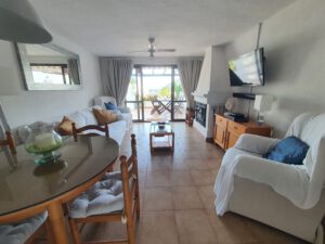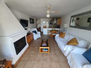 This duplex is a 3 bedroom apartment with sea views located in the lower part of a family-friendly community, five minutes from Cala Llonga beach. The community, called Pueblo Espárragos, has two large swimming pools and extensive gardens. It sits atop the hills overlooking the town and the beach.