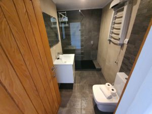 El primer baño dispone de ducha a ras de suelo, inodoro y lavabo. Recientemente reformado.
